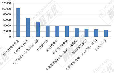 去年同期排位第四的金融/投資/證券行業(yè)在今年上升到了第二的位置,計(jì)算機(jī)軟件行業(yè)則從去年的第六位上升到了今年的第四位。